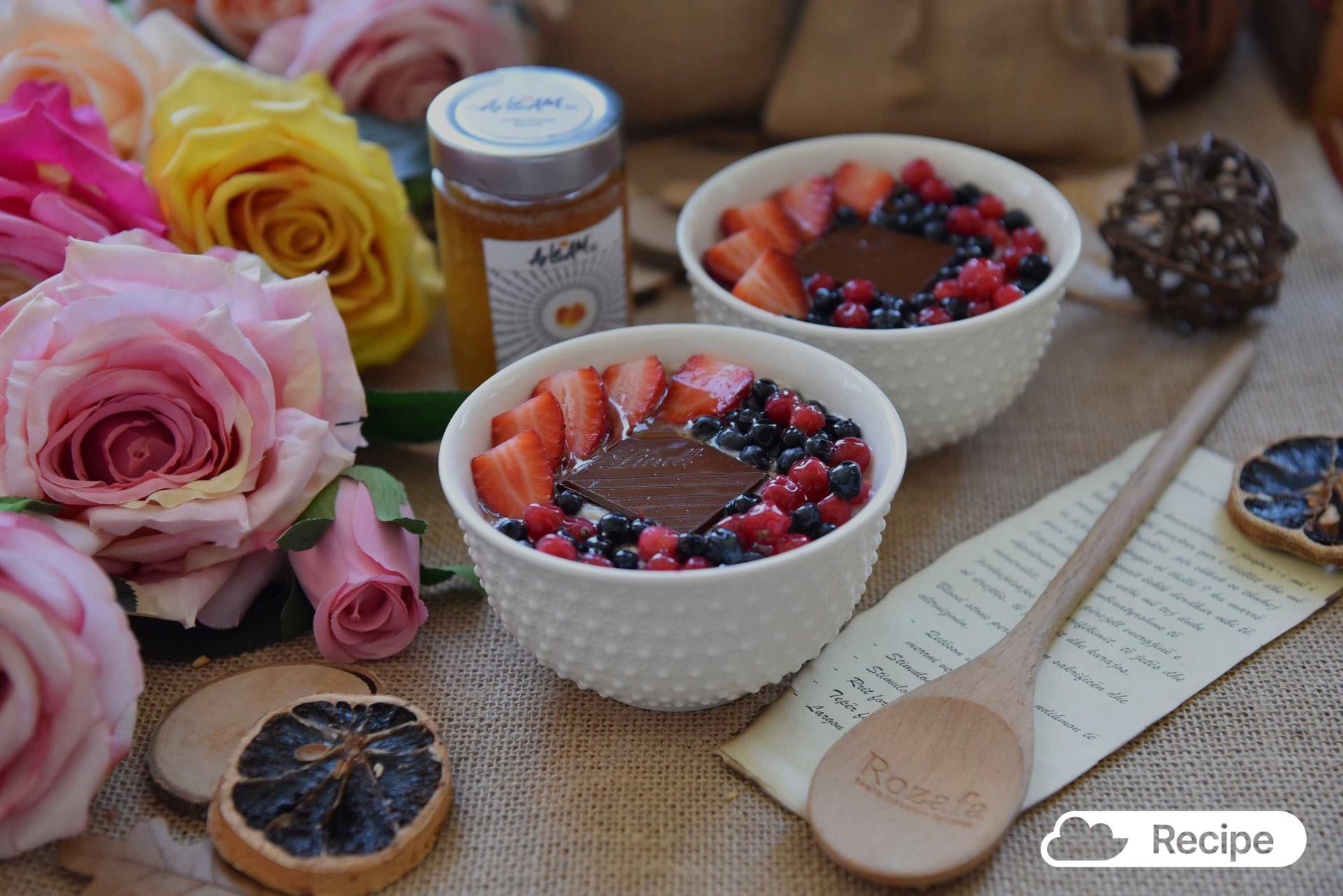 Breakfast Onboard - Oatmeal with Strawberries, Black and Red Blueberries